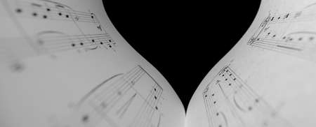 Horizontal shot of part of the heart music notes. The black and white concept of the love of music.