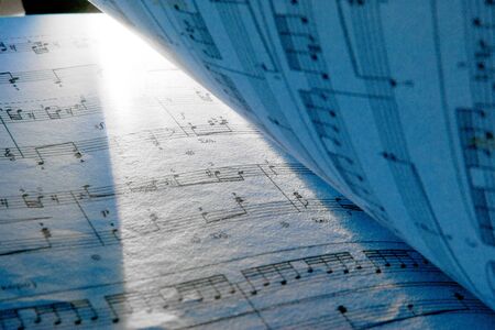 Sheets of musical notes. Still life. Musical notation. Treble clef. Music for people and learning. Art education. High quality photo