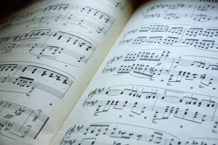 Closeup of Sheet Music. Musical Notes with Selective Focus.