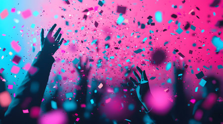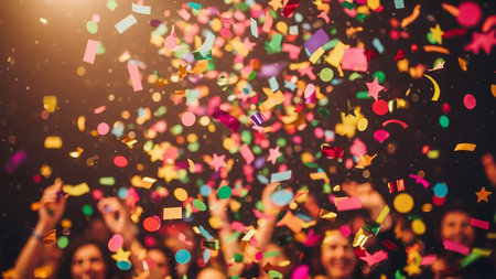 Vibrant confetti falls over joyful hands in celebration, capturing the essence of festive moments and lively gatherings.