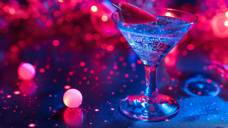 A Vibrant Cocktail Glowing Under Neon Lights at Night.