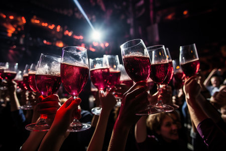 Clinking glasses with alcohol and toasting, party. Congratulations to the event. Cheerful party friends.