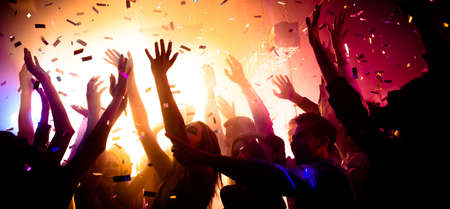 Diverse group of young people dancing in night club, enjoy party and have fun