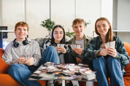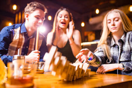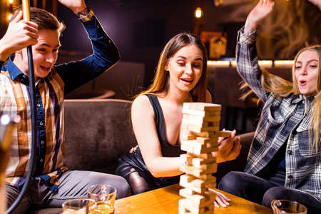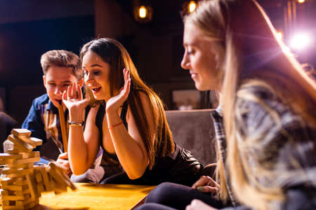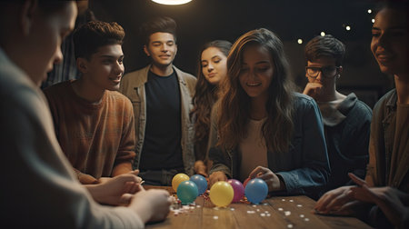 Young people have fun playing board games at a table