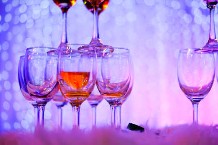 Glasses with alcoholic cocktails are beautiful slide beautifully illuminated in the bar. Illumination, close-up