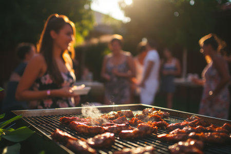 Join the fun at this delightful backyard BBQ party as friends come together to celebrate, share laughter, and enjoy the delicious taste of grilled food. The warm atmosphere of togetherness and the joy of good company fill the air as they savor a summertime feast.