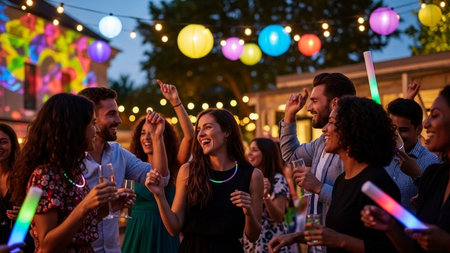 Energetic party vibes, dynamic celebration with music, dance, and joyous moments, essence of lively gatherings and memorable festivities for all to enjoy and cherish corporate event.