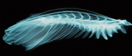 Detailed X-ray depiction revealing bird feather structure and lightweight design