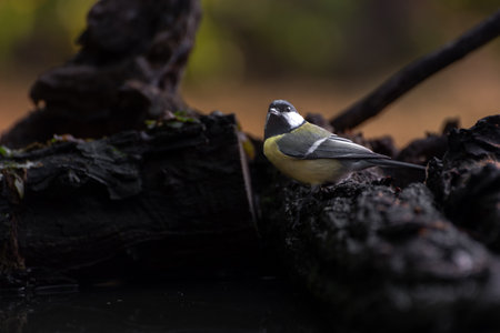 Portrait of a cute great tit. Parus major. Song bird in the nature habitat. Autumn scene with a titmouse.