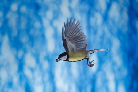 Great tit, Parus major, single bird in flight, Brazil