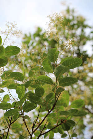 A vertical closeup shot of beautiful Cotinus coggygria flowers with a blurry background