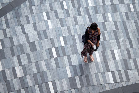 Limassol Cyprus May 10, 2020 View of unidentified girl walking in the streets of Limassol in the afternoon