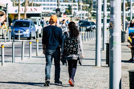 Tel Aviv Israel February 20, 2020 View of unidentified people walking in the streets of Tel Aviv during a sunny day in winter
