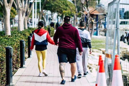 Tel Aviv Israel January 11, 2020 View of unidentified people walking on Herbert Samuel Promenade in Tel Aviv in the afternoon