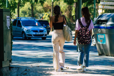 Seville Spain September 18, 2021 Pedestrians walking in the street during the coronavirus outbreak hitting Spain, wearing a mask is not mandatory but most of people wear it