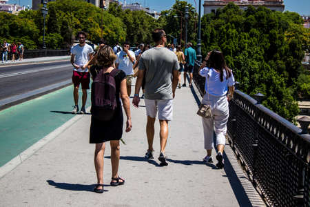 Seville Spain July 09, 2021 Pedestrians walking in the streets of Seville during the virus outbreak hitting Spain, wearing a mask in the street is not mandatory