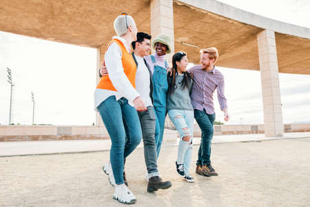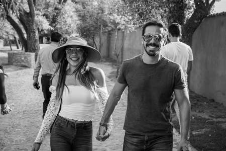 Portrait of a young couple happy millennial casual and modern dress. People of urban style