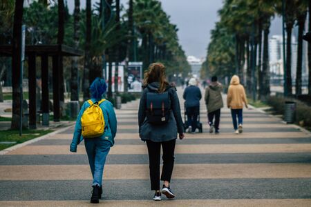 Limassol Cyprus March 13, 2020 View of unidentified tourist walking in the streets of Limassol in the afternoon