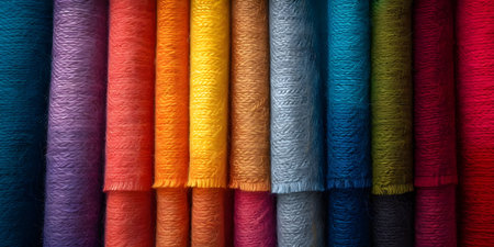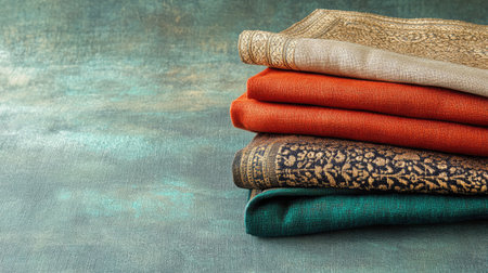 A captivating arrangement of colorful textiles, showcasing various fabrics stacked neatly on a textured background. Perfect for design inspiration.