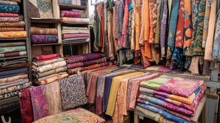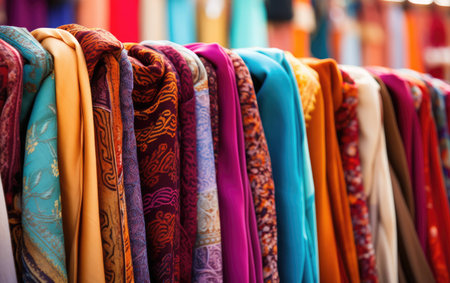 Colorful Scarves and Shawls in a Bustling Bazaar