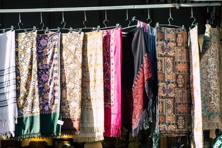 Colorful carpets and scarfs for sale at sevenirs shops in the Europe side of Istanbul, Turkey.