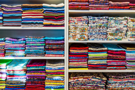 Clothing kaleidoscope: Countless pieces of apparel in various colors and patterns creating a dynamic visual display.