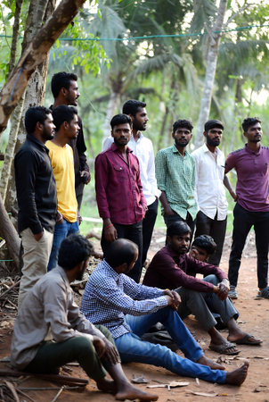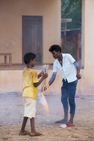 Illustrative image. Pondicherry, Tamil Nadu, India - February 25, 2014. Adolescents, young people in the street, eating shopping selling playing