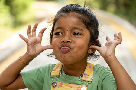 PUDUCHERRY, INDIA - DECEMBER Circa, 2018. Unidentified cute asian Indian kid with happy and funny face expression