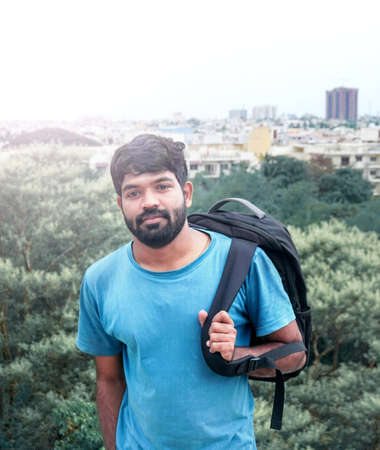 KODAIKANAL, INDIA - JUNE 29TH, 2015: Handsome young man looking outside and out of focus