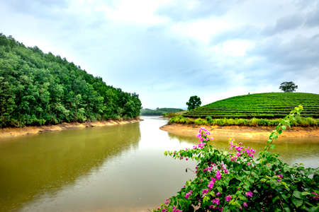 Thanh Chuong tea island, Nghe An province, Vietnam. Famous place for visit. Place with small islands full of tea and lakes around. Located on Ho Chi Minh Road.