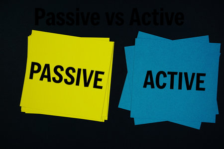 Word PASSIVE made with cement letters on grey marble background. Copy space. Business concept