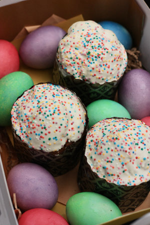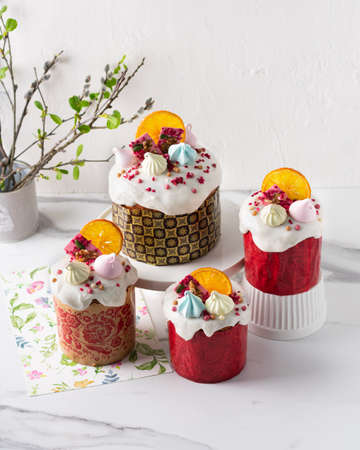 Easter Cakes - Traditional Kulich, Paska Easter Bread. Traditional easter spring