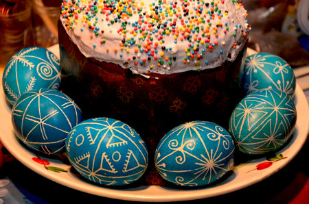 ostermotive painted easter eggs orthodox religion, slavic bread, ostern to celebrate Christ's coming back to life after the Crucifixion. Happy Easter!