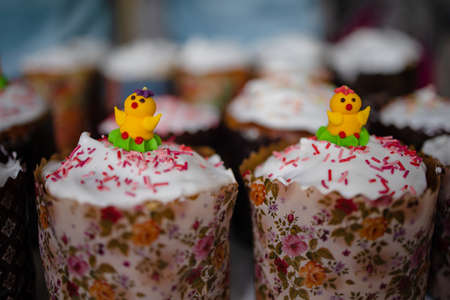 Easter Cake - Russian and Ukrainian Traditional Kulich, Paska Easter Bread. Selective focus.