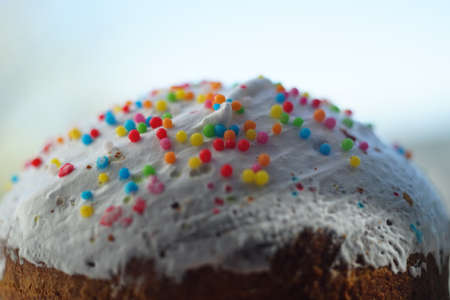Easter. Easter cake with raisins and icing sprinkled with colorful sprinkles