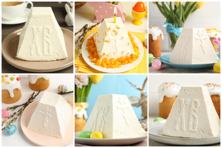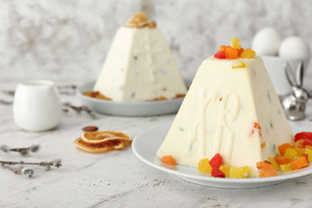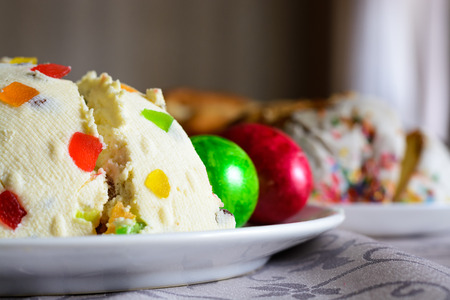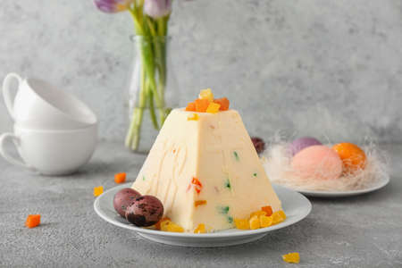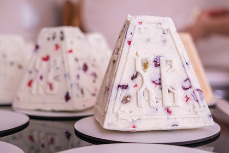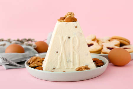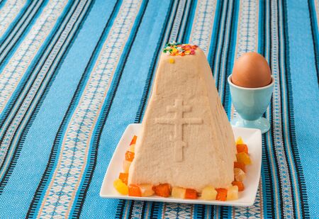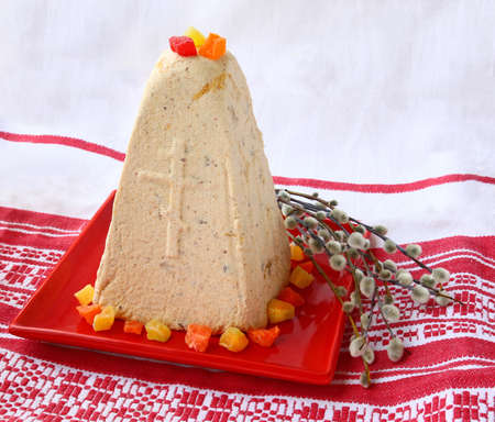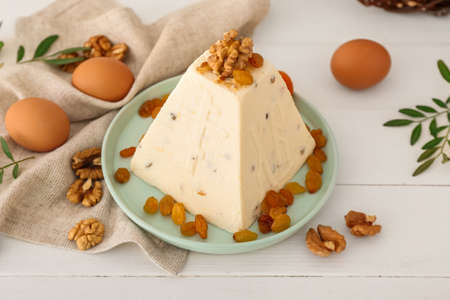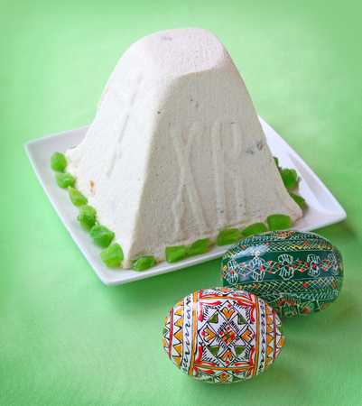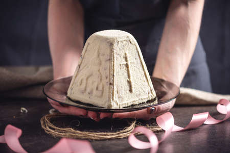 Traditional Easter dessert cheese pressed cottage cheese and eggs
