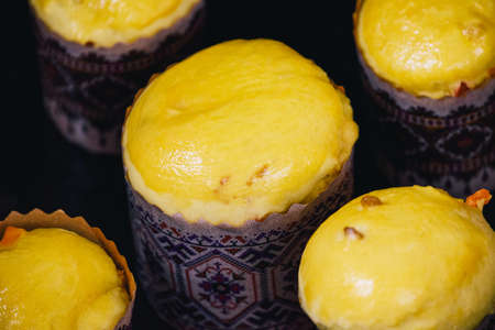 Easter Cake - Russian and Ukrainian Traditional Kulich, Paska Easter Bread. Selective focus.
