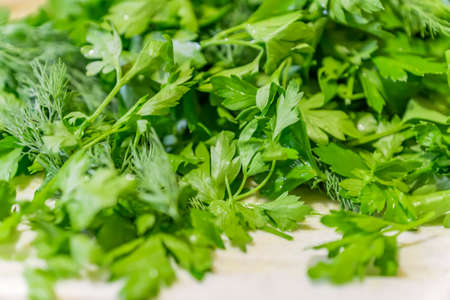 Dill and parsley. greenery. Green onion. Leaves parsley and dill