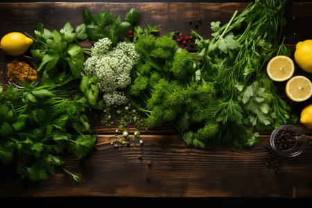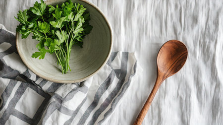 Generative AI Image of Fresh Harvested Green Clean Parsley Bundle with Marble Background