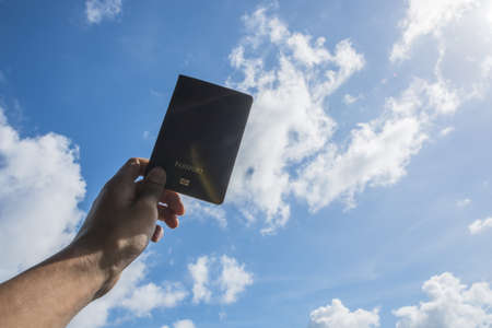 Image of a woman’s hand holding a passport