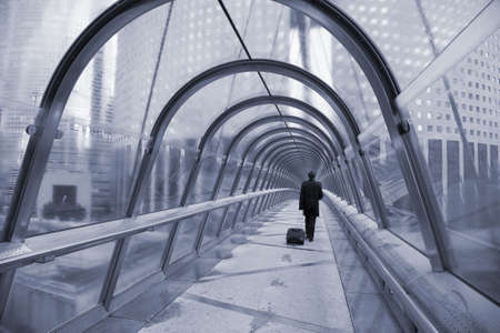 A long pedestrian tunnel, modern building interior.