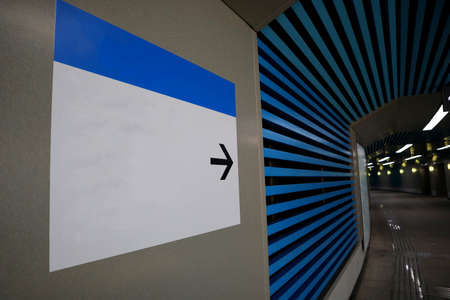 London, UK - May 09, 2021: Way out sign on an empty platform of London Underground, the oldest underground railway in the world, selective focus.