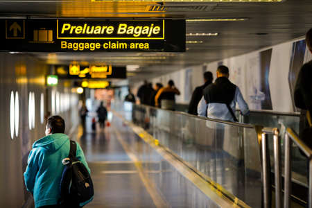 Otopeni, Romania - February 25, 2020: Passengers inside Henri Coanda International Airport, near Bucharest, Romania.