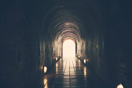 vintage tone of tunnel and light at the end.