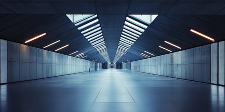 Empty concrete tunnel, modern architecture, spacious, illuminated