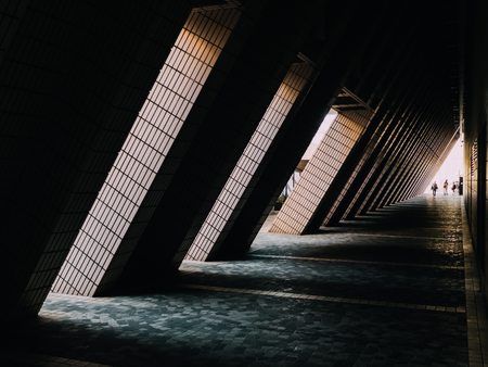 Underground passage in the city at night, illuminated by the sun