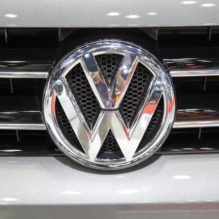 BANGKOK - MARCH 26 : Logo of Volk swagen car on display at The 35th Bangkok International Motor Show 2014 on March