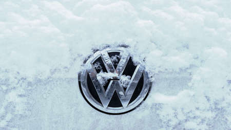VW volkswagen logo on the car show, Prague, Czechia, February 2020.