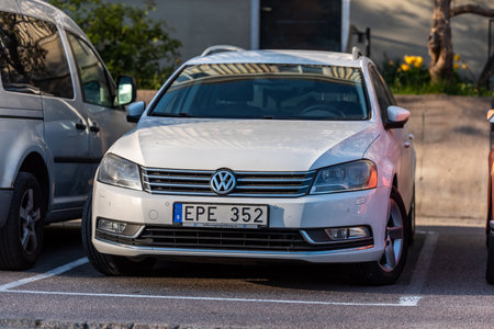 Gothenburg, Sweden - May 01 2022: A white 2013 Volkswagen Passat at a parking lot