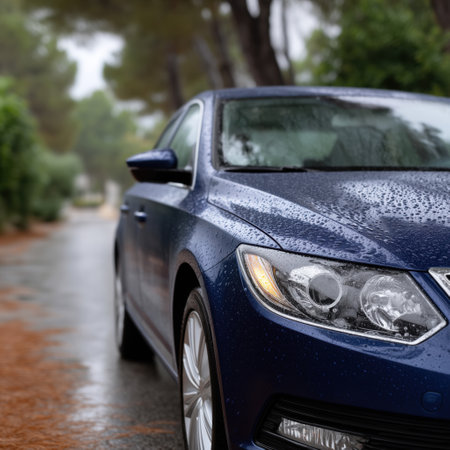 Warsaw, Poland, August 2017: Volkswagen Golf in a parking lot in rainy Warsaw